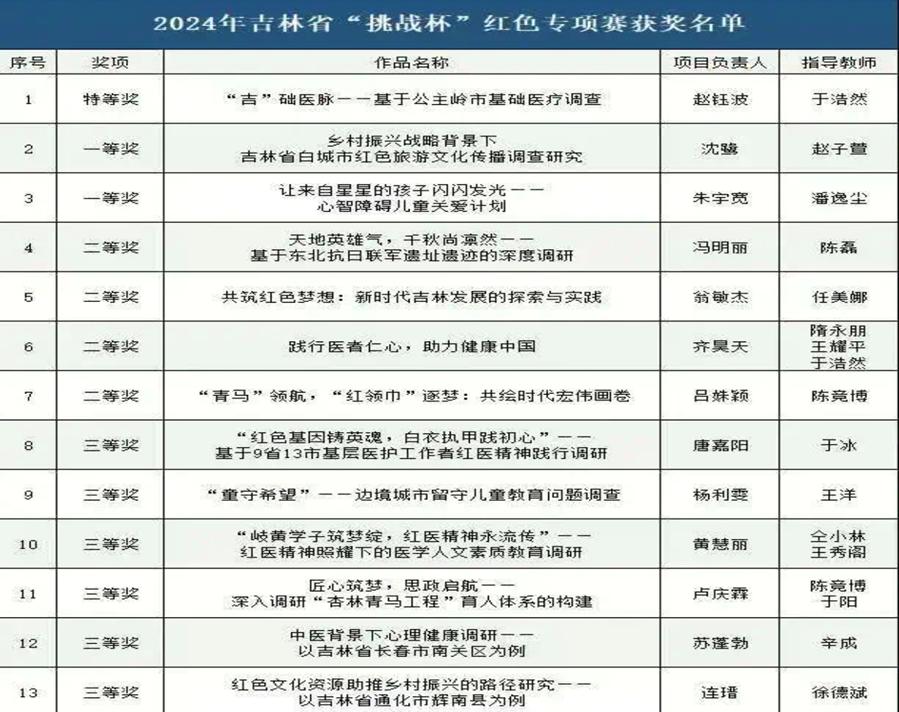 近日,由共青团吉林省委、吉林省教育厅、吉林省科学技术协会等单位联合主办的2024年吉林省“挑战杯”红色专项赛圆满落幕。Beat365中文官方网站的项目《乡村振兴战略背景下吉林省白城市红色旅游文化传播调查研究》和《让来自星星的孩子闪闪发光—心智障碍儿童关爱计划》获得省级一等奖,《"童守希望"—边境城市留守儿童教育问题调查》获得省级三等奖。