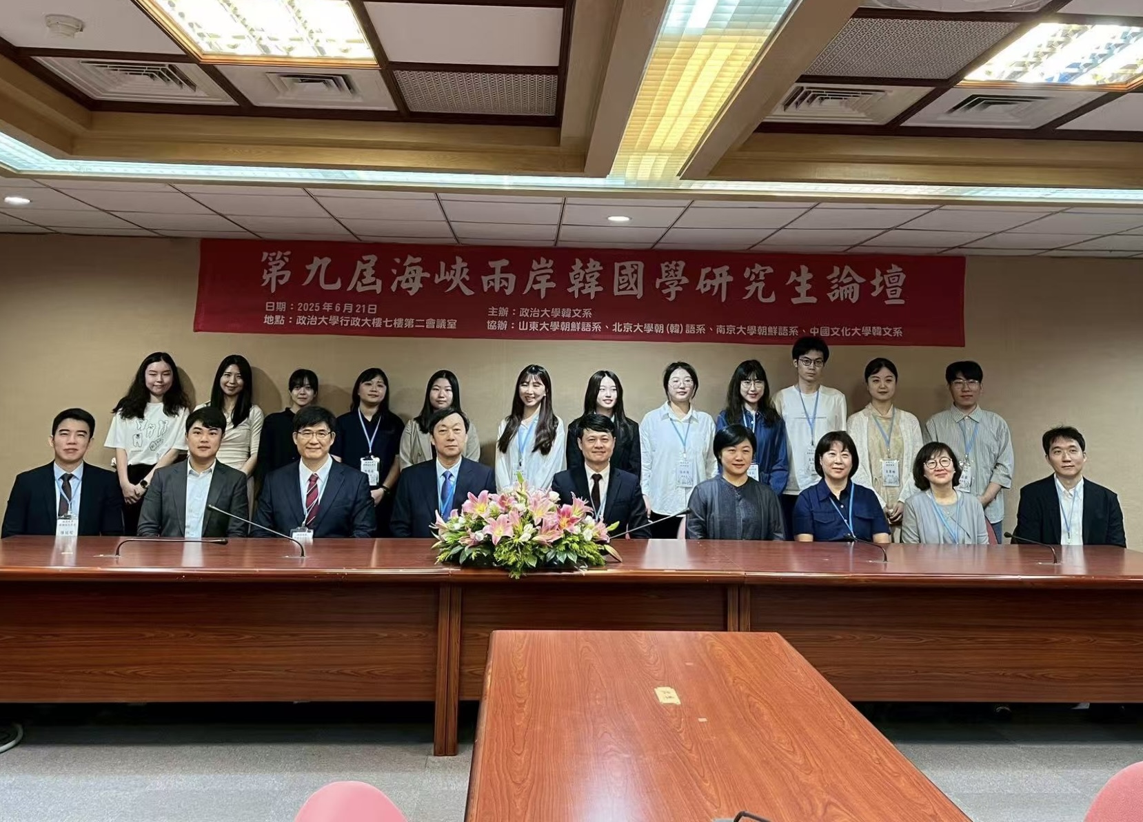 2025年6月21日,“第九届海峡两岸韩国学研究生论坛”在台湾政治大学行政大楼7楼第二会议室举行。来自jinnianhui金年会登录入口、台湾政治大学、山东大学、南京大学、台湾中国文化大学的三十余名专家学者与研究生参会。“海峡两岸韩国学研究生论坛”由jinnianhui金年会登录入口朝鲜(韩国)语言文化系、山东大学韩国学院、台湾政治大学外国语文学院韩国语文学系于2014年联合发起,2017年南京大学jinnianhui金年会登录入口朝鲜语系加入。随着今年台湾中国文化大学国际暨外语学院韩国语文学系的加入,论坛已扩展为五校论坛。