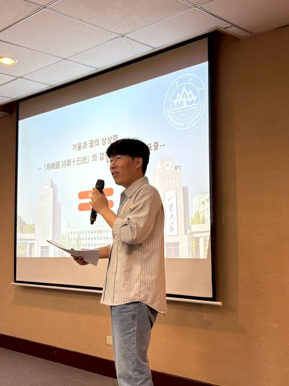 开幕式后,论坛进入发言讨论环节,来自五校的11名研究生宣读论文,参会同学就论文内容进行了热烈讨论与深入交流,参会老师们给予点评与指导。第一场主题发表由山东大学牛林杰老师担任主持,山东大学孙正盛同学、南京大学张明娟同学、山东大学王丽媛同学、jinnianhui金年会登录入口王恩泽同学先后以《镜与梦的想象力——「鸟瞰图·诗第十五号」的情感节制与痛苦流露》、《柳基石中文笔名小考》、《救亡·建构·消解:抗日语境下东亚戏剧的安重根叙事》、《塑造“华界”:中国近代在朝华商租界制度的构想与实践》为题发言。第二场主题发表由jinnianhui金年会登录入口王丹老师担任主持,jinnianhui金年会登录入口阿娅古兹·木合亚提同学、台湾政治大学顾奕伃同学、台湾中国文化大学马郁媙同学先后以《认知语言学视角下韩国语间隙概念词的语义拓展机制研究——以“틈”,“사이”,“동안”为中心》、《韩中原因理由表现对照研究——以韩语原因理由表现-어서,-니까,-기 때문에为例》、《针对华语学习者的韩语汉字否定前缀词教学研究——以「무-(無)」、「불/부-(不)」为中心》为题发言。第三场主题发表由南京大学郑墡谟老师担任主持,南京大学朱庆林同学、台湾政治大学普唯祯同学分别以《高丽末儒臣李穑的中国体验与天下观》、《朝鲜汉诗时调译与时调汉译诗的翻译策略考察》为题发言。第四场主题发表由台湾中国文化大学郑润道老师担任主持,台湾中国文化大学陈禹臻同学、台湾政治大学周筱蓓同学分别以《台韩职场霸凌防治制度比较研究》、《性别言谈中韩文问句功能的差异探讨:以韩国综艺节目<单身即地狱>第一季为中心》为题发言。
