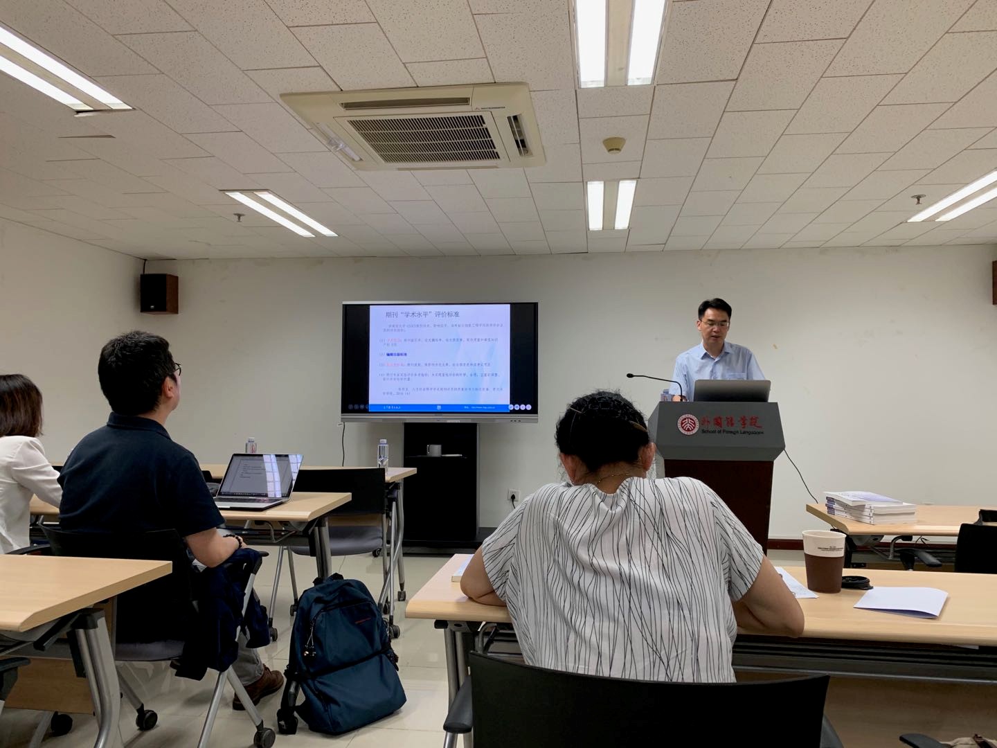 2019年6月14日下午,jinnianhui金年会登录入口社会科学部和《语言学研究》编辑部共同主办了 “学术期刊的出版规范与编审实践”学术培训讲座。本次讲座邀请了《中国外语》副主编、编辑部主任常少华老师。讲座由语言所所长高一虹教授主持,《语言学研究》编辑部老师及校内其他集刊编辑部的老师们参加了讲座。